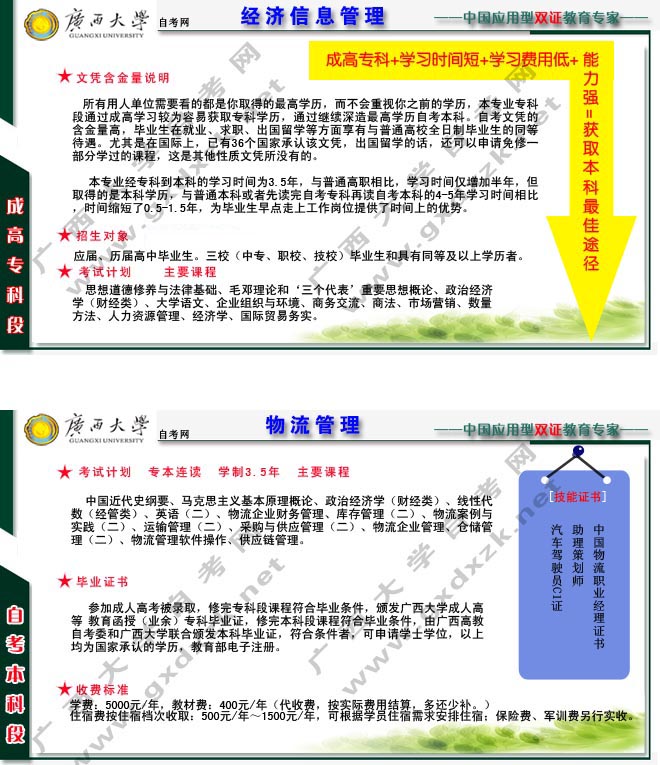 主要课程:会计学基础、物流学基础、市场营销学、广告学基础、采购与生产计划、经济法概论、物流设施与设备、物流和派送、物流信息技术、物流与供应链管理、国际物流学、物流成本管理、计算机网络基础、电子商务与物流、物流案例与实训
