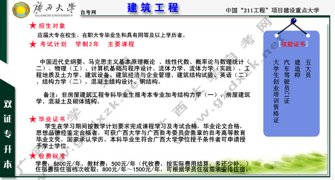 广西大学自考学生通过在校期间系统的理论学习和专业技能训练,具有本专业所需要的知识结构、能力结构和素质结构。